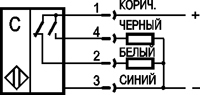 Электрические характеристики: четырехпроводный DC (10-30 В) (NO/NC) выход — PNP со световой индикацией и комплексной защитой с восстановлением.
