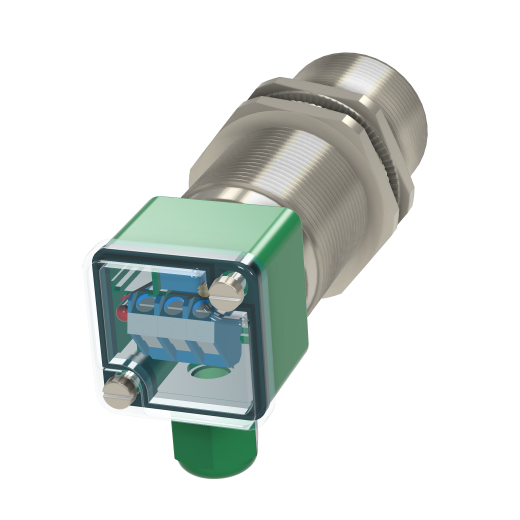 Емкостный датчик бесконтактный ВБЕ-М30-73К-1113-СА в цилиндрическом корпусе из никелированной латуни Ø30 мм, в общепромышленном исполнении.