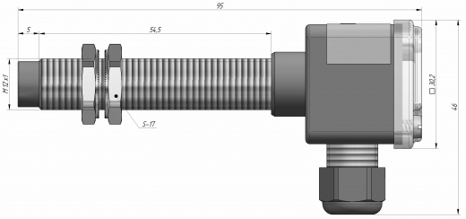 Индуктивный датчик ВБИ-М12-65К-2121-С.51 в цилиндрическом корпусе из никелированной латуни Ø12 мм, в общепромышленном исполнении.