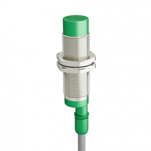 Индуктивный датчик ВБИ-М18-56С-2111-С в цилиндрическом корпусе из никелированной латуни Ø18 мм, в общепромышленном исполнении.