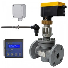 Регулятор расхода тепловой энергии РРТЭ с датчиками контуров ГВС и отопления, датчиком температуры обратки, датчиком наружного воздуха, с клапанами регулирующими: для контура отопления - DN50/KN25, для контура ГВС - DN40/KN10: «РРТЭ- Т3-В1-50/25-40/10».