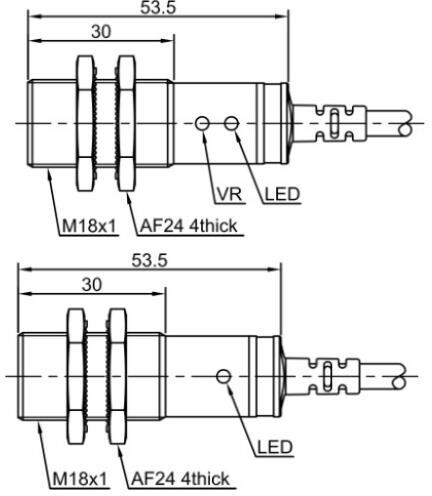 Применяется как датчик диффузного отражения, работает при напряжении в пределах 12-24 DC. Соединение осуществляется через кабель длиной 2 м. Выход — NPN со срабатыванием NO+NC. Устройство излучает инфракрасный. Особенность модели — настраиваемое расстояние обнаружения, простота установки, подходит для всех видов промышленных применений.