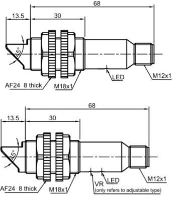 Применяется как датчик диффузного отражения. Работает при напряжении в пределах 12-24 DC. Соединение осуществляется через разъем m12. Выход — pnp со срабатыванием no+nc. Устройство излучает инфракрасный. Важная особенность модели — простота установки. подходит для всех видов промышленных применений.