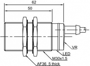Применяется как датчик диффузного отражения. Работает при напряжении в пределах 12-24 DC. Соединение осуществляется через кабель 2 м. Выход — pnp со срабатыванием no+nc. Устройство излучает инфракрасный. Важная особенность модели — настраиваемое расстояние обнаружения. простота установки. подходит для всех видов промышленных применений.